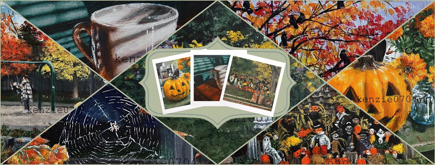 Warm mugs of tea, jack-o-lanterns, and trees of changing colours make up this collection inspired by scenes of every day life during the transition from summer to winter. Decorate your home with these cozy prints of paintings inspired by the autumn season.